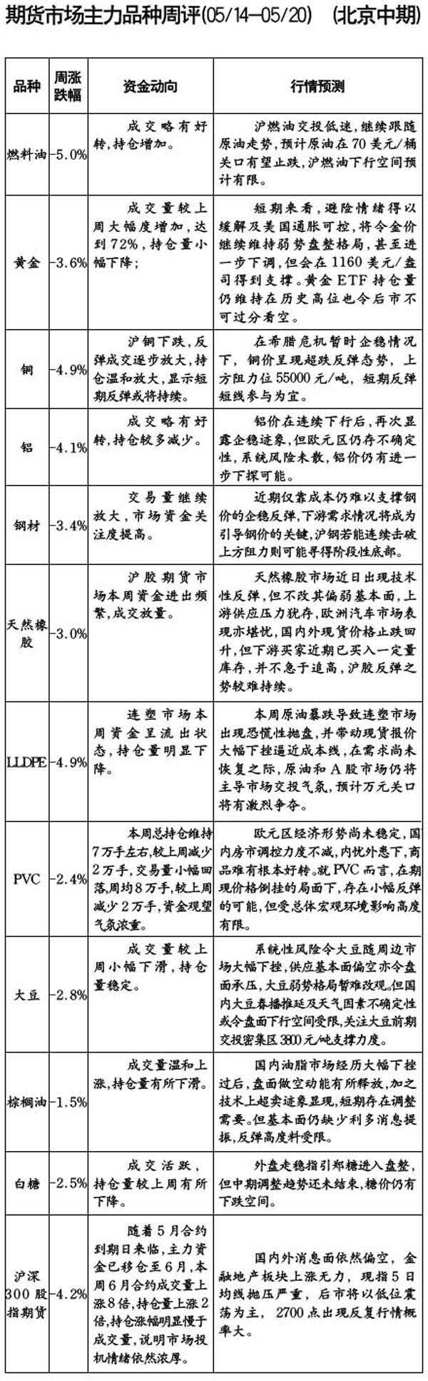 期貨市場主力品種周評[05.14-05-20]