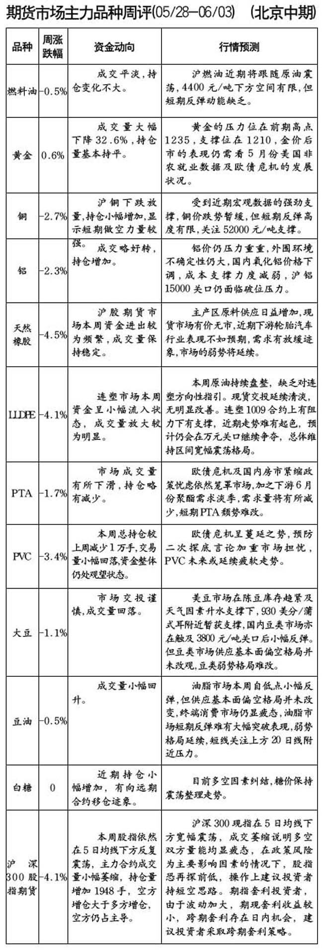 期貨市場主力品種周評[05.28-06.03]