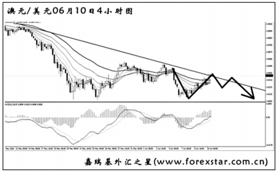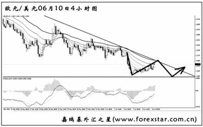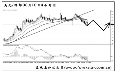 ▲美元兌瑞郎將4小時圖的上升趨勢線跌破,此前一連串的MACD頂背離信號發揮了一定的效果,目前有階段性筑頂成功的跡象,但目前下結論還為時尚早。短線的強動能交替節奏頻繁,操作有一定的難度。此波美元兌瑞郎有望向前方道氏點1.1265挺進,但跌破的希望不大。