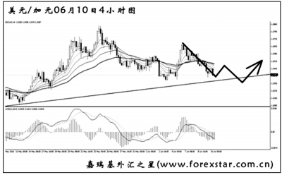 ▲美元兌加元繼續沿趨勢線震蕩上行,但此波上漲的斜率很平緩。短線匯價即將考驗圖中趨勢線的支撐,位置在1.0340,同時MACD處于空頭動能充盈階段。若跌破此線,美元兌加元有望再度暴發一波主下跌趨勢,反之則會繼續自己的反彈行情。 |