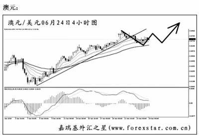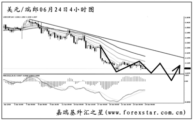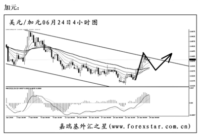 ▲美元兌加元運行到了下降通道的上沿,短線多頭動能強勁。本周前三個交易日美元兌加元均收出大陽線,調整的需求在逐漸加大。預計匯價最終升破通道上沿的希望很大,但在此將遭遇一定的走勢反復。操作上可以等待通道升破后再行入場做多。
