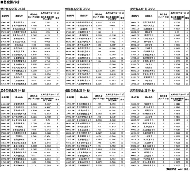 混合型基金排行榜[2010-06-25]