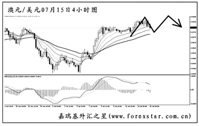 ▲澳元兌美元正在沖擊前方高點的阻力0.8860,能否升破成為后市繼續上漲的關鍵。短線匯價的上漲動能發生了明顯的減弱,在突破此阻力前,已不適合激進做多澳元。圖中道氏理論的顯著低點在折線的起點0.8680,若跌破此位,澳元還將引起更深度的下調。