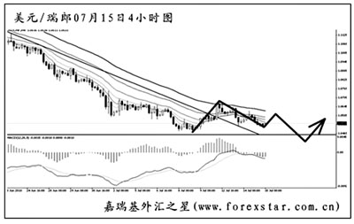 ▲美元兌瑞郎將下降趨勢線升破,目前在回探前方低點,此前MACD出現了幾次明顯的底背離信號,預計美元兌瑞郎將發生一波上行回調,但幅度料將有限。圖中均線系統壓制匯價,后市再創新低的概率較大。由于日線圖強支撐在1.0435,美元兌瑞郎下跌的空間并不廣闊。