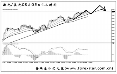▲澳元兌美元的漲勢延續,趨勢線和均線系統的依托作用良好。圖中的MACD發生了數次的頂背離信號,但在趨勢線被跌破前,需繼續保持看漲澳元的思路。短線匯價有向趨勢線發起回調的欲望,隨即遭遇支撐繼續創新高的希望很大。預計下周澳元將是一個沖高回落的運行節奏。