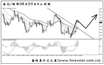 ▲美元兌瑞郎將包含MACD底背離點的上升趨勢線強力升破,預示匯價將有一波明顯的反彈行情。大級別道氏理論顯著高點阻力在1.0640,這是美元兌瑞郎這波挑戰的首要目標。短線如果出現清晰的主次節奏或中繼形態,可以小倉做多,等上述阻力突破后再逐漸加大倉位。