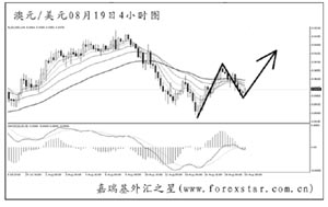 ▲澳元兌美元此前的下跌止于0.8860一線,短線重新反彈上行,并且將圖中道氏理論顯著高點阻力0.9035升破,匯價有望延續其中線的上漲勢頭。短線澳元處于回落調整中,操作上先以做空為主,直到澳元在小時圖重新轉為主上升趨勢才能考慮做多。