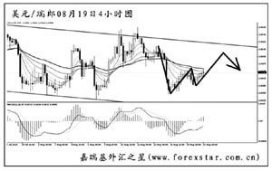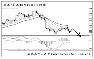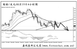 ▲英鎊兌美元短線的下跌動能有所減弱,圖中趨勢線為日線圖形成,現匯價正在考驗此線的支撐作用。4小時圖均線系統壓制排列,短線英鎊有望重新上探一次趨勢線,但最終跌破轉為下行的希望很大。操作上可等英鎊再度跌破1.5500之后等調整做空。