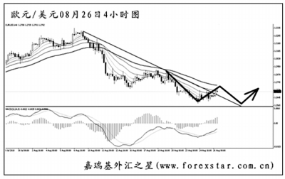 ▲英鎊兌美元小幅跌破了順勢旗形的下沿,此后發力反彈,將下降趨勢線升破。從圖中來看,英鎊短線的下跌動能持續減弱,后市匯價有繼續上沖的動力。但升破1.5700一線阻力非常關鍵,決定了后市能否回歸中線的漲勢。短線以做多為主,但目標不宜看得過遠。
