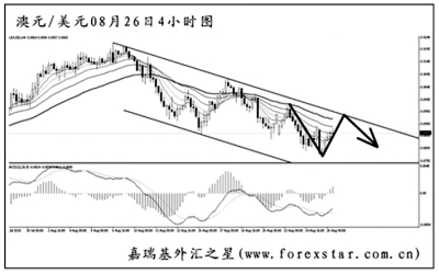 ▲澳元兌美元沿下降通道一路下行,短線的跌勢保持完好。但從小時圖來看,澳元在下跌過程中伴隨著大起大落的動能交替節奏,對于交易不太有利,F在重點關注通道上沿對匯價的阻力作用,只有升破通道,澳元才有望重新拾得漲勢。