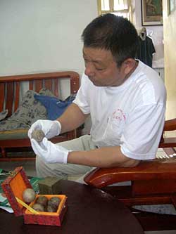| 姜愛國手中的捶丸均是從山東東平縣州城(宋代被稱為鄆州,為當時著名的文化古城)收集而來。 | 千年前“捶丸”實物世間亮相