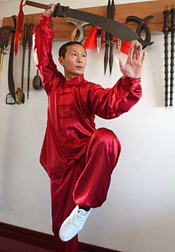 | 武術家趙金城不但熱愛中華武術,還是個十分熱愛收藏中國古代兵器的收藏者,據收藏界業內人士介紹,趙金城收集古代兵器的規模、數量,花費的精力、財力等,在當地都是絕無僅有的,堪稱“北國江城”吉林市收藏古代兵器第一人。新華社記者