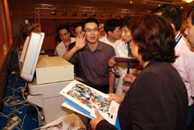 | 銷售人員正在向消費者介紹彩色激光打印機的性能、特點及使用知識。經濟參考報資料照片 |