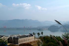 位于三峽大壩上游的古民居與三峽大壩交相輝映。