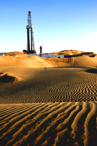 圖為中國石油集團位于塔里木盆地里的沙漠鉆井。