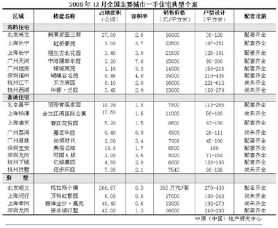 2006年12月全國主要城市一手住宅典型個案