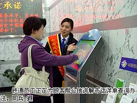 記者拿到的鐵通“誠信服務,放心消費”行動計劃顯示,鐵通公開向社會作出四個方面的服務承諾:一、認真深入做好在全國300多個地市提供的本地市話詳單查詢服務,并逐步提供互聯網、觸摸屏、電子郵件等多種渠道的查詢手段,使用戶明明白白消費;二、通過全國統一客服電話“10050”全天候人工受理各項業務,為用戶提供方便;三、對鐵通計費系統產生的話費誤差部分實行雙倍返還;四、上半年內實現鐵通業務代理商和代理人員信息整合,并通過“10050”客服電話向公眾提供所有業務代理商及代理業務員的身份認證,進一步杜絕虛假代理的欺騙行為。