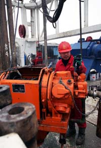 2月22日,中國石化湖北江漢油田50785鉆井隊的石油工人在維護鉆井設備。春節期間,江漢油田石油工人堅守崗位,確保工期進程和施工安全。