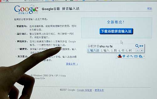 4月4日,一名女子在?谙螺d新發布的谷歌拼音輸入法。