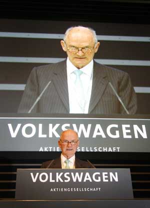 4月19日,歐洲最大汽車制造商大眾公司監事會主席皮希在德國漢堡召開的公司年會上講話。大眾公司18日宣布,今年第一季度,由于公司的全球銷量穩定增長,其凈利潤比去年同期翻番,達到7.4億歐元。