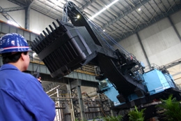 日前,太原重型機械集團有限公司和神華集團準格爾能源公司為WK-35大型礦用挖掘機舉行了出廠驗收會。由太重自主研發的WK-35礦用挖掘機是大型露天礦山的開采設備,可適用于3000萬噸級的大型露天煤礦、鐵礦及有色金屬礦山的剝離和采裝作業。圖為技術人員正在試車。
