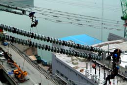 5月25日,三峽右岸電站送電工程線路架設全部完工,為右岸電站機組投產發電奠定了基礎。三峽右岸電站500千伏輸電系統采用7回線路向華中、華東、華南等地區送電。