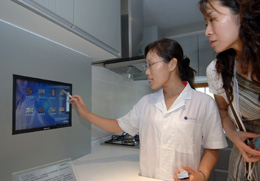 日前,海信集團在青島海信研發中心正式發布命名為“DNet-home”的數字家庭系統標準第一版。在參照“DNet-home”標準建造的數字家庭體驗館內,通過一部可隨身攜帶的平板電腦,業主就能在房屋內的任何一個位置,對家中的電視、空調、電話、電冰箱、保安系統和智能監控系統進行設定和更改,同時通過移動電話、互聯網絡等設備還可對家中所有電子設備進行遠程遙控。
