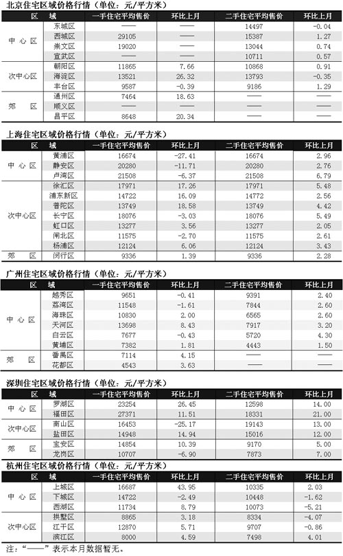 2007年6月全國主要城市住宅價格一覽