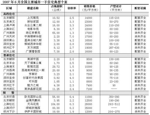 2007年6月全國主要城市一手住宅典型個案