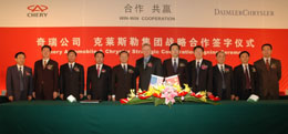 奇瑞汽車與克萊斯勒戰略合作簽字儀式在北京釣魚臺舉行。(本報資料照片) | 目前,關于“自主創新”與“合資”是否悖行矛盾的討論仍不絕于耳。最近,商務部副部長、國家機電產品進出口辦公室主任魏建國指出,“在經濟全球化的今天,任何一個國家都不可能獨自完成汽車產業鏈而具有競爭優勢,必須在開放的環境中加強合作,實現互利共贏! 近期,由于中國自主品牌汽車與外資合作的新聞連續發布,奇瑞、哈飛、長豐、吉利等紛紛加快與外資合作步伐。有業內人士稱,這是中國汽車業的第二次合資合作浪潮。值得稱道的是,雙方合作已不再是20年來“市場換技術”的單一合資框架模式,中國汽車企業在合作談判中開始握有更多的話語權。而“自主創新”正成為全新汽車合作時代的最大看點。 我們通過對以下三家自主品牌汽車企業在與外資的創新合作模式的分析中看出,三家企業都無一例外的“捍衛”了品牌的自主權,而更讓我們看到的是,國際汽車巨頭們也已認識到了這一點,他們也再不斷調整中國市場戰略布局并作出讓步。