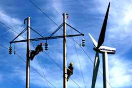 除了在火力發電方面做好節能減排,大唐集團公司還大力進軍被稱為“綠色能源”的風電領域。 赤峰風電項目可以被認為是大唐集團公司進軍風電領域的第一個項目。2005年8月,矗立在賽罕壩的第一臺風機并網發電,結束了大唐沒有風電的歷史。據悉,這一風電項目一期工程建設規模30兆瓦,安裝36臺單機容量850千瓦的變槳距調節風力發電機組,同時建設120公里220千伏輸電線路,項目總投資4.1億元,負荷通過烏丹一次變送入東北電網。 “賽罕壩風電場裝機容量在2006年已達17萬千瓦,成為目前全國最大的風電場!背喾屣L電公司總經理胡永生向記者介紹,今年赤峰風電公司將新建七個項目,總裝機容量330兆瓦,安裝來自國內外三個設備廠家、三種型號總計268臺風力發電機組。此外,還將新建三座變電站、擴建一座變電站,建設220千伏、110千伏、35千伏線路共計200公里,負荷接入東北、華北、蒙西三個電網。 “風力發電是綠色高效的能源利用,賽罕壩巨大的臺型地貌為建設大型風力發電場提供了得天獨厚的條件。這里年有效風速時數近8000小時,具有較好開發利用前景,也是大唐集團公司進軍風電市場的一柄利刃!焙郎@樣告訴記者。