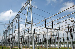 2007年6月投入運行的欽州500千伏久隆變電站是北部灣沿海地區第一座投入運行的500千伏變電站。這個電站的投運加強了廣西電網500千伏骨干網架,使電網的供電能力、安全穩定水平和供電可靠性大大提高,不僅滿足欽州及廣西東南部地區用電負荷增長的需要,還成為廣西加速建設“西電東送”的重要電源基地。圖為廣西欽州500千伏久隆變電站。