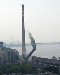 出于“節能減排,上大壓小”的考慮,湖北華能黃石市發電股份有限公司一座150米高的煙囪日前被成功爆破拆除。這是目前國內已實施爆破拆除的建筑物最高高度。