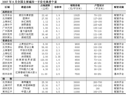 2007年8月全國主要城市一手住宅典型個案