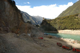 西藏林芝巴河老虎嘴水電站工程位于林芝地區工布江達縣巴河干流上,距工布江達縣約44公里,距拉薩市約343公里。老虎嘴水電站工程是西藏自治區“十一五”電力發展規劃的重點建設項目之一,預計將于2008年底竣工。圖為林芝老虎嘴水電站工程在緊張施工。