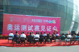 海爾中央空調通過好運北京奧運測試賽媒體見證會。(本報資料照片) | 一直由跨國品牌壟斷的奧運場館市場終于向本土品牌敞開了大門,這并非是北京奧運會對本土品牌的偏袒。 日前,海爾中央空調為中標近2/3的奧運場館而發布產品吉祥物——鳳凰“樂樂”。北京2008奧組委高級顧問魏紀中表示,奧運會對招標產品的要求是世界上最嚴格并且最先進的,而本土品牌能從中勝出說明了本土品牌的產品品質已達到國際一流水準,并且意味著本土品牌正在走向世界,通過北京奧運會向世界宣告自己作為國際知名品牌的實力。
