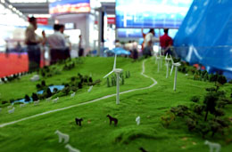 日前,中國可再生能源產業藍天排行榜在深圳首次開榜,國內太陽能、風電、生物質能及小水電行業的相關優秀企業和單位榜上有名。圖為觀眾在參觀新一代風力發電系統模型。