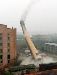 日前,南昌發電廠一座80多米高的小機組煙囪在巨響中轟然倒下,這是江西省實施電力“上大壓小”的第一爆。