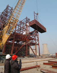 今年以來,天津石化進一步加快100萬噸乙烯工程及配套項目建設步伐,目前工程配套項目的道路、網管、熱電工程等土建施工已全面展開。圖為天津乙烯工程建設者在進行配套項目的主廠房施工。