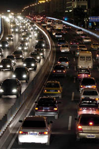 2007年北京市機動車保有量突破300萬輛。圖為北京二環路上浩浩蕩蕩的車流。新華社發