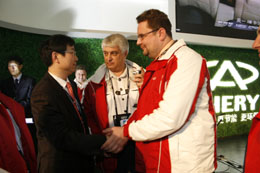 奇瑞汽車董事長尹同耀與海外經銷商交談。 | 本報訊