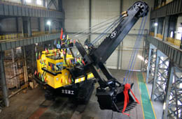 1月26日,國內首臺礦用55立方米挖掘機在山西太重集團下線,這是我國2000萬噸級以上大型露天礦成套設備中的關鍵設備,具有完全自主知識產權,可滿足世界上所有露天礦山的采掘條件。新華社記者:武敵 攝