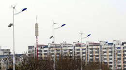 一種風能與太陽能相結合的新型路燈日前在天津市南開區梅苑路試運行。據悉,每盞路燈都橫扛著一個小風車,攔腰還托舉著一塊太陽能電路板,白天小風車和太陽能電路板將風能和光能轉化成電能,儲存到埋在地下的蓄電池里,夜間自動給路燈供電,節能又環保。