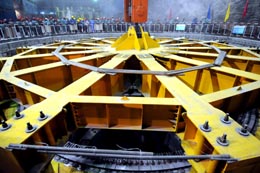 拉西瓦水電站首臺發電機定子日前吊裝成功
