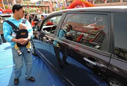 “五一”小長假期間,銀川市街頭的家庭汽車展吸引了許多休閑購物的民前來觀看、選購。