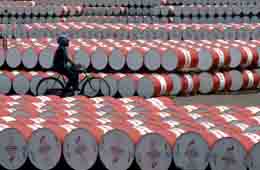 印度尼西亞總統蘇西洛日前說,由于不再是主要的石油出口國,印尼正考慮退出石油輸出國組織(歐佩克)。圖為在印度尼西亞首都雅加達的國家石油公司,一名工人騎車在儲油罐間穿行。