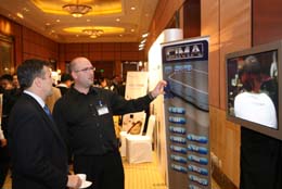 日前,2008亞太未來電視國際峰會在上海舉行,來自世界各地200多位電信運營商、傳媒集團、廣電設備提供商等機構參加了會議。為期兩天的會議圍繞數字技術下的電視業發展、未來電視的商業模式創新、新技術下的電視創新與融合等專業內容進行主題演講與討論。圖為英國一家數字廣播公司代表(左二)在介紹情況。