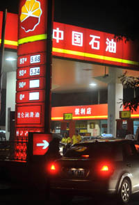 6月19日晚,不少車主趕到北京宣武門一處加油站加油。本報記者:羅曉光