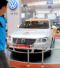 為期一周的第三屆中國長春汽車工業展覽會6月27日在長春國際會展中心開幕,共有國內外32個品牌的300輛車在此次車展中“同場競技”。圖為一汽-大眾攜奧運火炬傳遞車在車展中亮相。