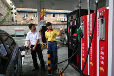 國內首座真正意義上的全付費自助式加油站近日在蓉城成都開業,這座加油站由中國石油四川銷售公司出資170余萬元興建,共有5臺加油機20把油槍,能對外出售90號、93號、97號汽油和0號柴油。這種自助加油站除了可以進行5至100元的現金交易外,更可以接受各種銀行卡、IC加油卡進行消費。 “全付費自助式加油站不僅開辟了一個全新的經營模式,也為消費者帶來了一種與國際接軌的全新體驗!敝袊退拇ㄤN售成品油分公司總經理朱力洋說,“首先,大大降低人力成本,以前加油站有18名工作人員,實行自助模式后只配備了8名工作人員,以后還要減人;同時,按照國際慣例,自助加油站的油價比普通加油站便宜,首座自助加油站比普通加油站每升便宜5分錢! |